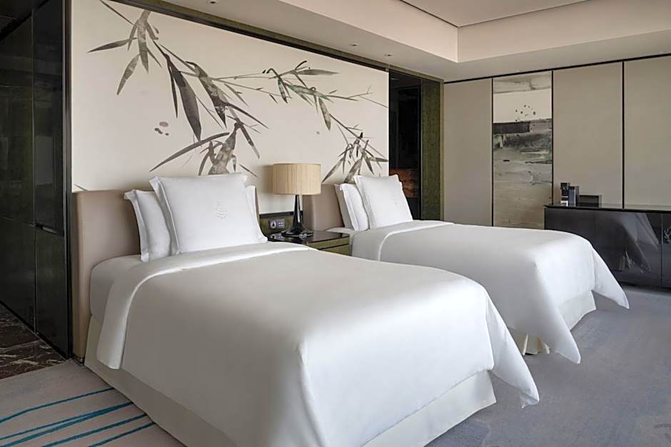 Spacious suite with Pearl River view, features a separate living room, a dining area for four, and a luxurious, naturally lit full-marble bathroom with an extra-large soaking tub, and offers airy living spaces. A home away from home for business travelers or small families.